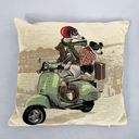 Handmade Pillow with Vespa Riding Dog Buddies Embroidery h44