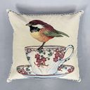 Handmade Pillow with Sparrow on a Mug Embroidery h44