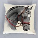 Handmade Pillow with Sad Black Horse Embroidery h44