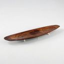 Walnut Wooden Bowl, Flat Irregular Canoo Shape, Tiny white Stands, 1961