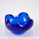 Nubbly Glass Ashtray, Shiny Cobalt Blue, Four-Leaved Flower Shape, Everted Edge