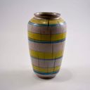 50’s Ceramic Table Vase, Cross-striped, Beige/Blue/Yellow B5