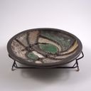 Rough Ceramic Plate, Brown/Beige/Green with Black Square Metal Stand