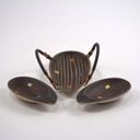Ashtray Set, Three Pieces, Handles, Drop-Shaped, Black, Yellow/Red/Blue Spots