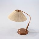 Temde Wooden Table Lamp with Wire Shade and Copper Statics 1956 h52