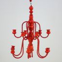 Red Wooden Chandelier for Candles Erzgebirge ø54