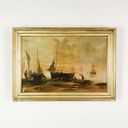 Golden Oil Painting of Sailing Boats by the Coast 23E13