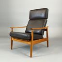 Arne Vodder High Back Leather Armchair with Teak Frame