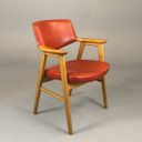 Wooden Armchair with Red Leather Upholstery