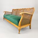 Beautiful Rattan Sofa with Green Velvet Upholstery