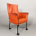 Likon Blood Orange Leather Armchair on Rolls