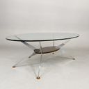 Product ID: 97251Farbe: transparent chrom brownMaterial: Glass/Metal/WoodMaße: h46x155x75cmAnzahl: 1Zustand: GoodShape: round,ellipse
