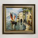 Oil Painting of a Boat Docking on a Port in South Tirol 1964 h54 29A13
